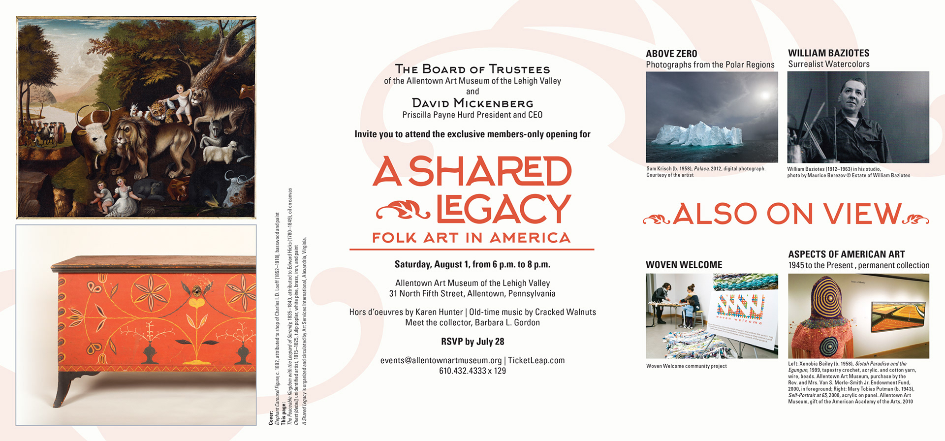 A few samples of outdoor signage advertising exhibits at the Allentown Art Museum as well as a mailer for a members exhibit opening event.