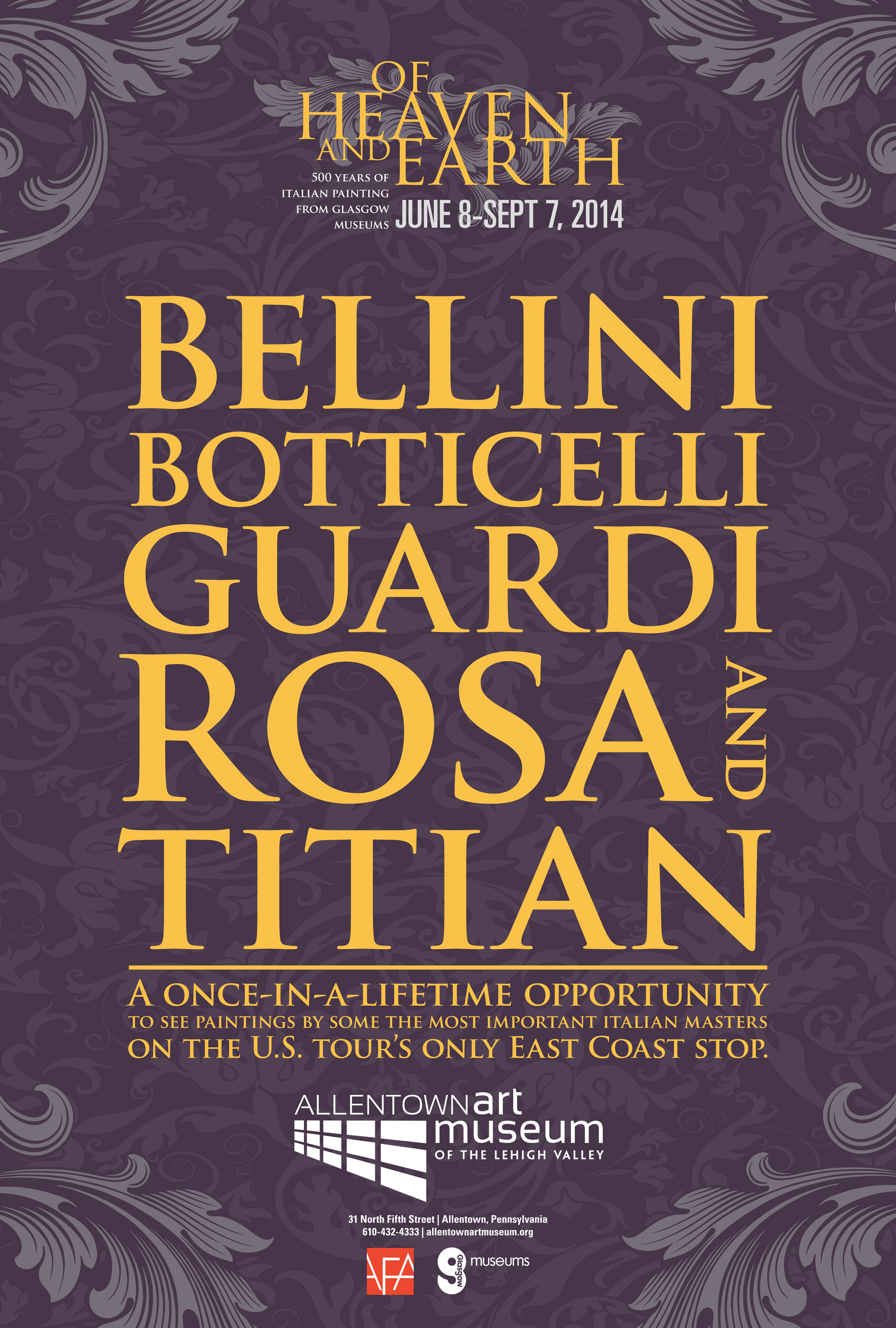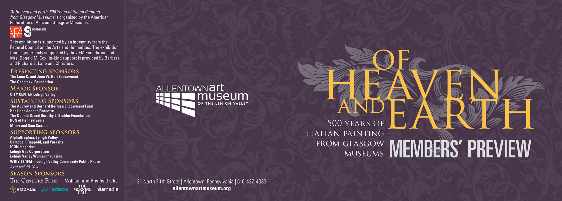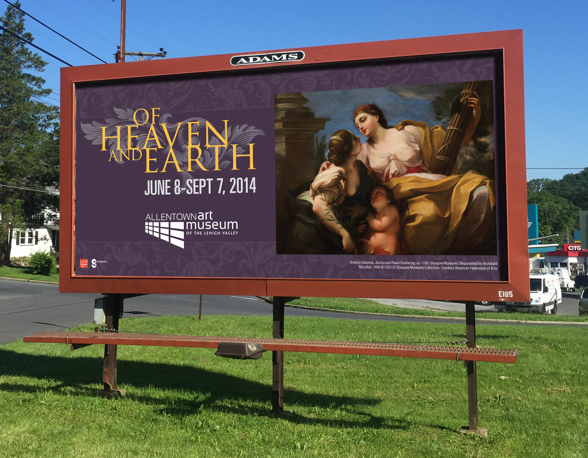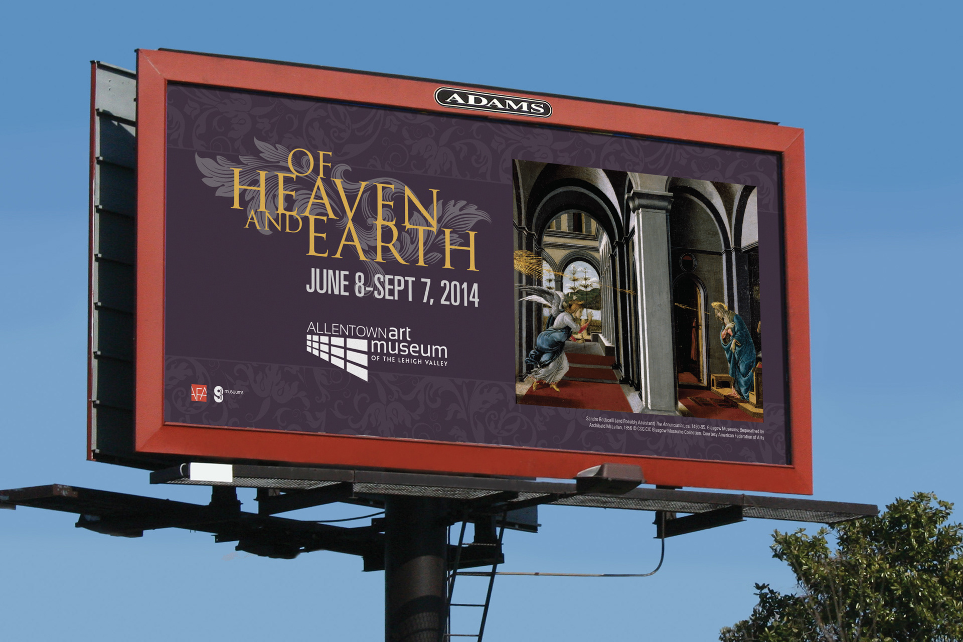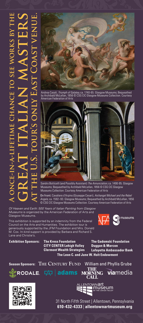 Selection of advertising materials for the Allentown Art Museum "Of Heaven And Earth" exhibit. Pieces include posters, out-of-home, rack card and mailer.